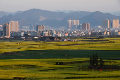 而且,與別的地方所不同,羅平的油菜花是當地農民自發(fā)依山而種。按照季節(jié)的呼喚和土地的形態(tài),農人們以質樸的方式種下油菜花,讓它們漫山遍野、鋪天蓋地生長,造就了一片片自然天成的花海景觀。G324、南昆鐵路從花海中橫貫而過,不時有那勤勞的養(yǎng)蜂人聚在花海之中,放蜂追花采蜜。登山遠眺,玉帶湖、臘山湖、灣子湖如同三面明鏡,鑲嵌在浩瀚的花海中。油菜花海里,村落點點、寨子棋布,還有那牛街石巖溶洼地,則呈現(xiàn)出另一派精妙別致的“千丘田”田園風光。