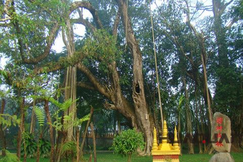 的曼短佛寺,傣語稱之為"瓦拉扎探",位于縣城西南約10公里。是當?shù)卮鲎逋麖氖伦诮涛幕顒拥闹行摹?jù)史籍記載,佛寺始建于950年(時為大理政權(quán)),距今已有千余年歷史,是小乘佛教傳入后 早興建的佛寺之一。