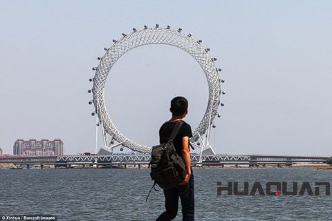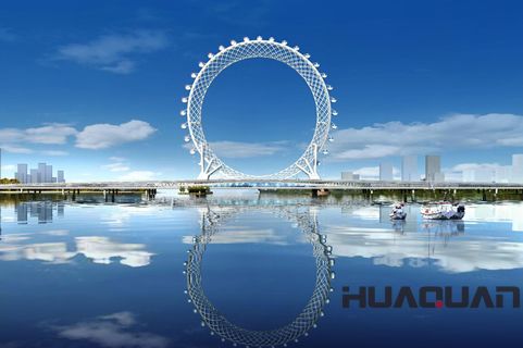 根據英國《每日郵報》5月17日的報道,位于山東省濰坊濱海經濟開發區的白浪河摩天輪(也稱“渤海之眼”)已經建設完成并已于2017年勞動節期間投入試運行。也許世界各地的摩天輪確實為數眾多,但“渤海之眼”卻一連創造了三項世界之 ,即世界上的無軸式摩天輪、首例編織網格形式摩天輪和 無軸式輪橋合一摩天輪,這事兒只有濰坊做到了。報道進一步指出,這座巨型摩天輪以“白浪河大橋摩天輪”命名,因為它建在長1,771英尺(約539.8米)的白浪河大橋上,該摩天輪高475英尺(約144.78米),共有36個座艙,每個座艙可容納10人,轉完一圈需要28分鐘……在摩天輪上近可俯視波濤翻滾的白浪河,遠可眺望煙波浩淼的渤海灣,所以摩天輪又被稱為“渤海之眼”,并將成為“鳶都”濰坊的地標性建筑。