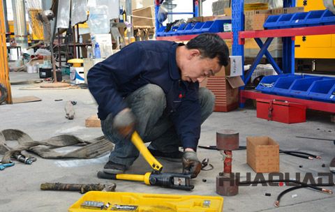 圖為:萬(wàn)德勝正在緊固線頭卡環(huán)