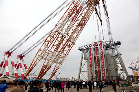 今年1月初,裝機容量3.4兆瓦的LHD林東模塊化大型海洋潮流能發電機組總成平臺在浙江舟山下海,這是我國首臺自主研發生產的裝機功率的潮流能發電機組,由浙江省舟山聯合動能新能源開發有限公司自主研發而成。7月27日,隨著浮吊船將兩個24米高、230噸重的發電組模塊 吊裝至海下總成平臺,潮流能發電在舟山成為現實。這標志著我國潮流能發電進入“兆瓦時代”,在海洋潮流能源開發利用領域走在世界前列。