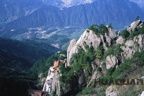 值得一提的還有芙蓉峰。芙蓉峰(海拔900米),又名蓮花峰、華山西峰。此峰北起九華之首,峰巒崛起者有五,清秀如蓮花。從化城寺觀芙蓉峰,猶如巨大的綠色屏風。清人汪管有詩云:群峰可自五丁開,剖就芙蓉可亂栽。常怪九華山上客,紛紛不為看山來。