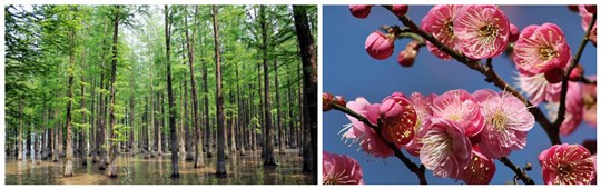 1983年,武漢市開展市樹、市花評選工作。水杉憑借“活化石”和“古老的世界之爺”的美譽被評為市樹;梅花被評為市花。梅花屬薔薇科落葉小喬木,其枝條上有退化小枝,呈針刺狀,幼枝綠色,有時背面呈紅色;葉廣卵形,葉柄短;花瓣及花萼為圓形,五枚一團?;ㄓ屑t、白、黃等色,清麗芬芳,于深冬開放,經月余至初春凋謝。千百年來松、竹、梅被稱為“歲寒三友”,為世所頌。