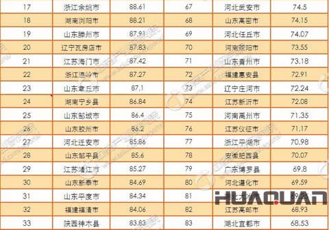 與以往相類似,在2016中國縣域綜合競爭力百強(qiáng)排行榜中,地處東部沿海的江蘇、浙江、山東依舊保持優(yōu)勢,占據(jù)了百強(qiáng)榜的“半壁江山”。江蘇歷來是上榜大戶,除了前四強(qiáng)的席位被江蘇省牢牢占據(jù),一共有22個(gè)江蘇縣市進(jìn)入百強(qiáng)榜單,浙江則有13個(gè)縣市入列。而華全動力所在的山東省一共有20個(gè)縣市上榜,其中,即墨市排名 靠前,全國第12位;青島、煙臺、濰坊各有4個(gè)縣市上榜,占據(jù)了全省(20個(gè))的六成席位。