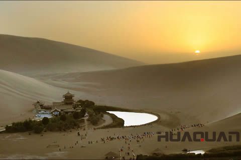 要問中國 美的風(fēng)景在哪兒?敦煌算作一處。尤其是那神奇的月牙泉,以及由此形成的勝景——“月泉曉徹”,總讓人垂涎、迷戀。沙漠的眼睛、天地的鏡子、人間的圣泉……一個個堪稱地表 美的詞匯,我想無論用哪一個來形容月牙泉都不為過。9月9日上午,一臺50千瓦的玉柴系列發(fā)電機(jī)組從山東華全動力裝車起運,發(fā)往甘肅敦煌,于是隨華全發(fā)電機(jī)組,我們也來到了敦煌——這座被稱作“沙都”的千年古城。